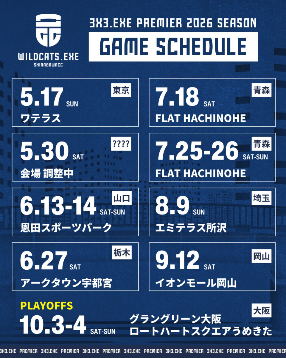 本日、3×3.EXE PREMIER 2026シーズンのスケジュールが公開されましたので、お知らせいたします。