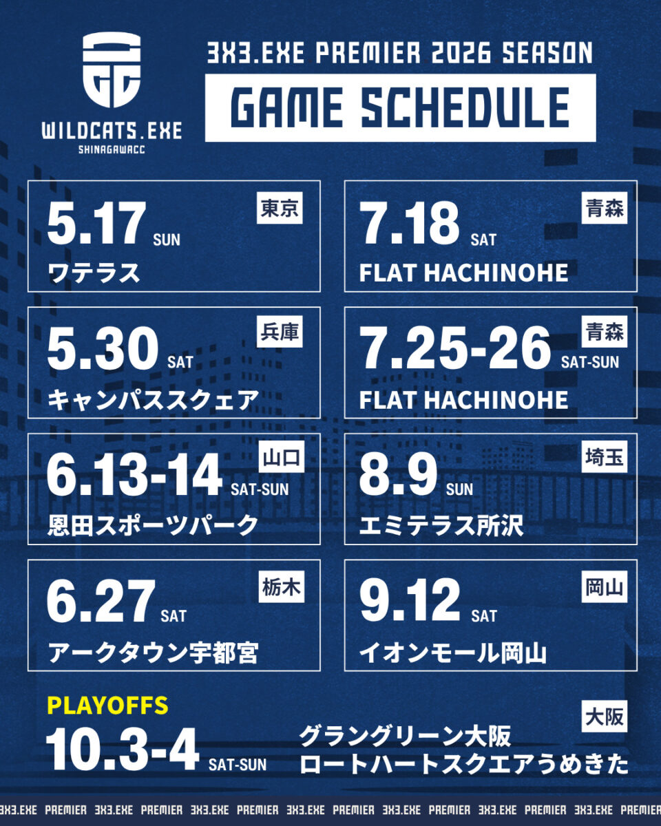本日、3X3.EXE PREMIER 2026シーズンのスケジュールが公開されましたので、お知らせいたします。