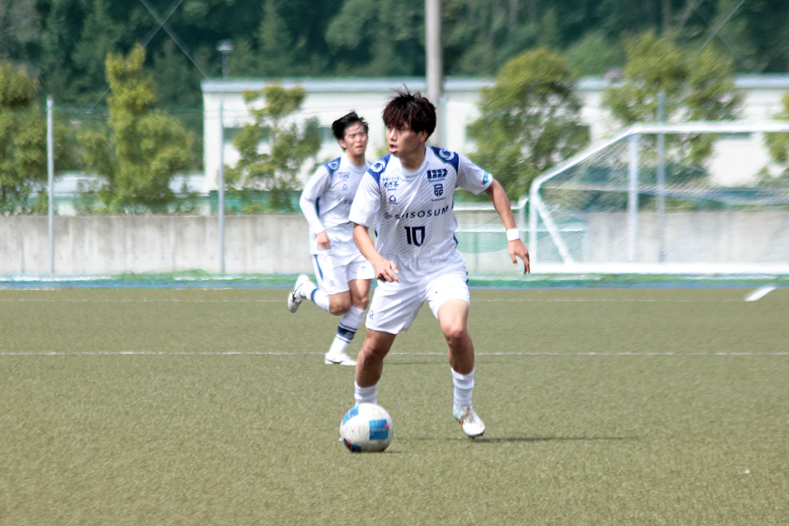 86分 No.9 西谷天晴 がサイドからボールを運びグラウンダーのパスを出す。相手DFの前に出た No.10 吉野大貴 が合わせるも、ゴールのわずか左へ。