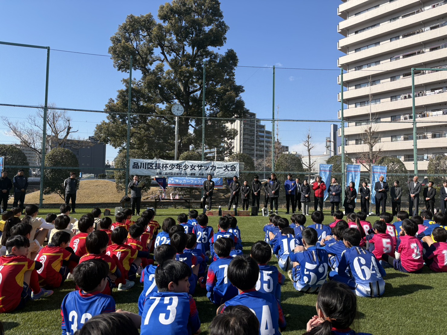 品川区長杯少年少女サッカー大会の開会式と同時開催になりました。