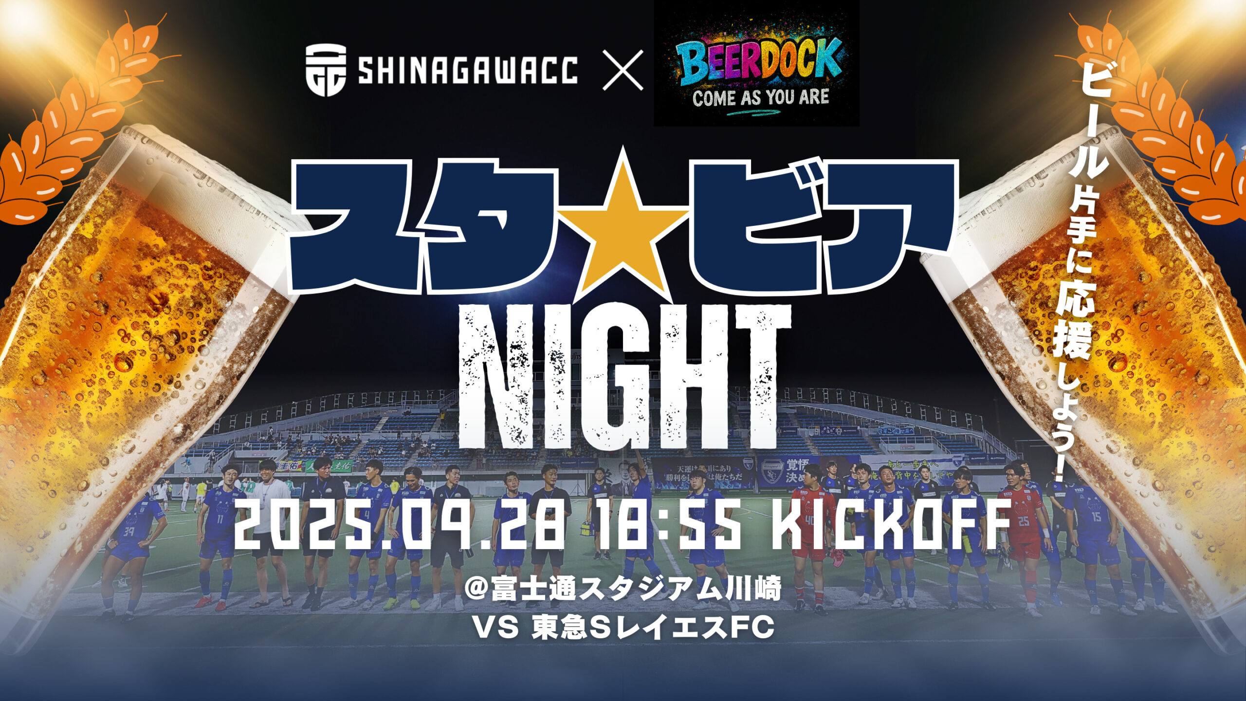 9月28日(日)東急SレイエスFC戦にて『スタ☆ビアNIGHT 』の開催が決定いたしましたのでお知らせいたします。